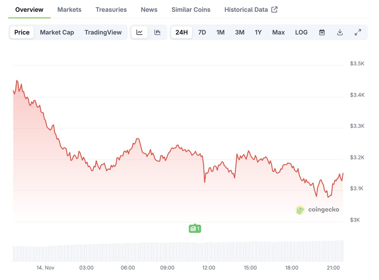 Ethereum cũng đang chứng kiến xu hướng giảm giá tương tự, với kỳ vọng giá sẽ giảm xuống dưới 3.000 đô la.