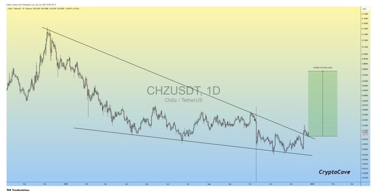 Sau nhiều tháng biến động chậm chạp, Chiliz (CHZ) cuối cùng đã thoát khỏi xu hướng giảm kéo dài. Biểu đồ hiện cho thấy lực mua ngày càng mạnh, với đà tăng trưởng được cải thiện đều đặn.
