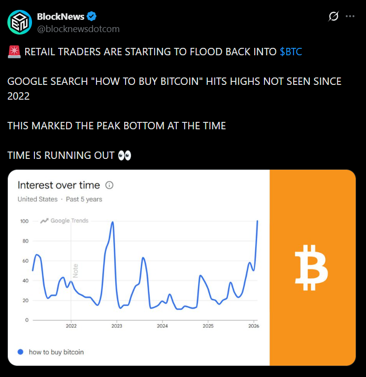 Dữ liệu Google Trends – được cộng đồng giao dịch lan truyền rộng rãi – cho thấy sự quan tâm của nhà đầu tư nhỏ lẻ đang quay trở lại.