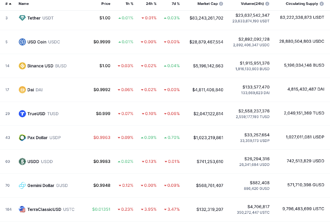 Theo bảng thống kê sau, YUSSD hiện là stablecoin đứng thứ 5 và là đồng tiền mã hoá đứng thứ 29 trên bảng xếp hạng của Coinmarketcap. Tổng nguồn cung giao dịch hơn 2 tỷ USD. Tuy nhiên, khi so sánh chúng với top 3 gồm TUSD, USDC và BUSD thì nguồn cung của TUSD chiếm thị phần rất nhỏ.