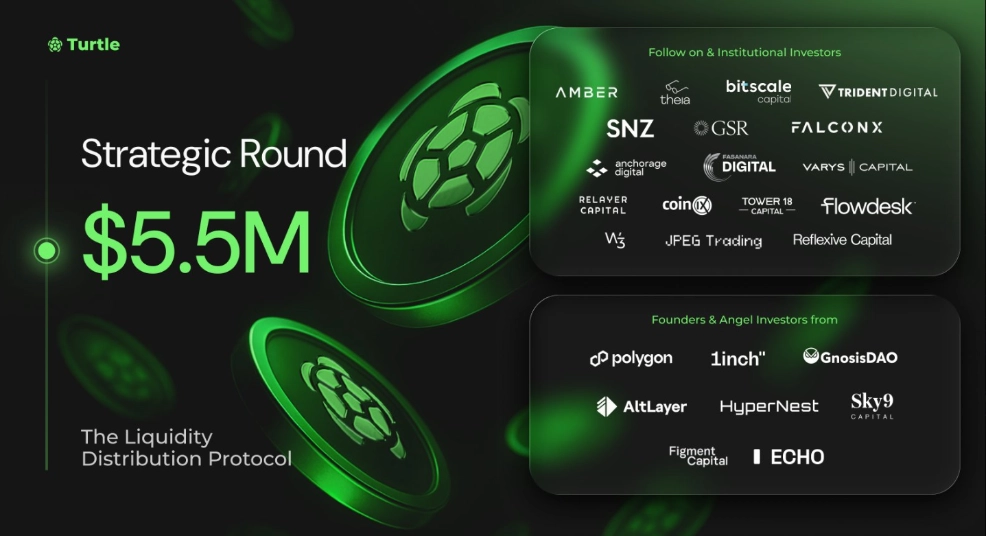Turtle đã huy động được ở Strategic round (5,5 triệu USD): có sự góp mặt của Bitscale VC, Trident Digital, Amber Group, GSR, FalconX, cùng nhiều quỹ lớn và các founder từ Polygon, 1inch, GnosisDAO, AltLayer.