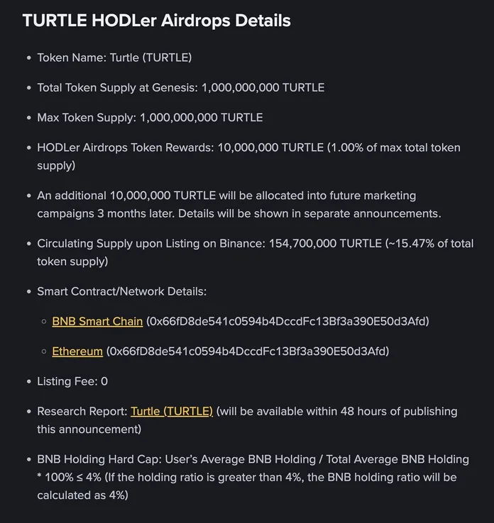 Binance thông báo dự án thứ 55 trên HODLer Airdrop – Turtle (TURTLE)