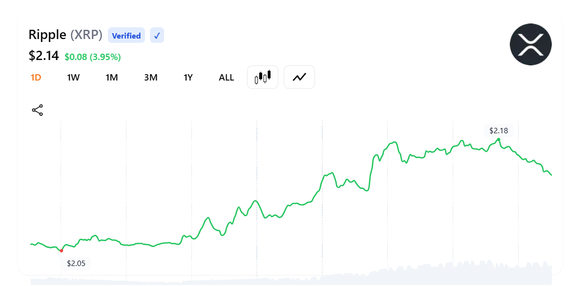 XRP giữ vững đà bứt phá, giao dịch sát mốc 2,18 USD